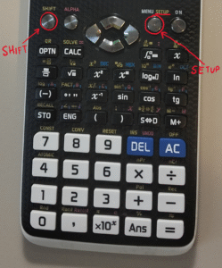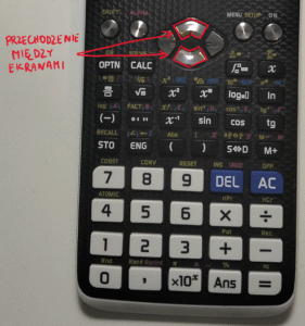 UWAGA. Na koniec informacja jak zmienić w nowszych wersjach kalkulatora opcję jednej funkcji na dwie i odwrotnie. Musimy wejść do ustawień i w tym celu wciskamy SHIFT a następnie SETUP.